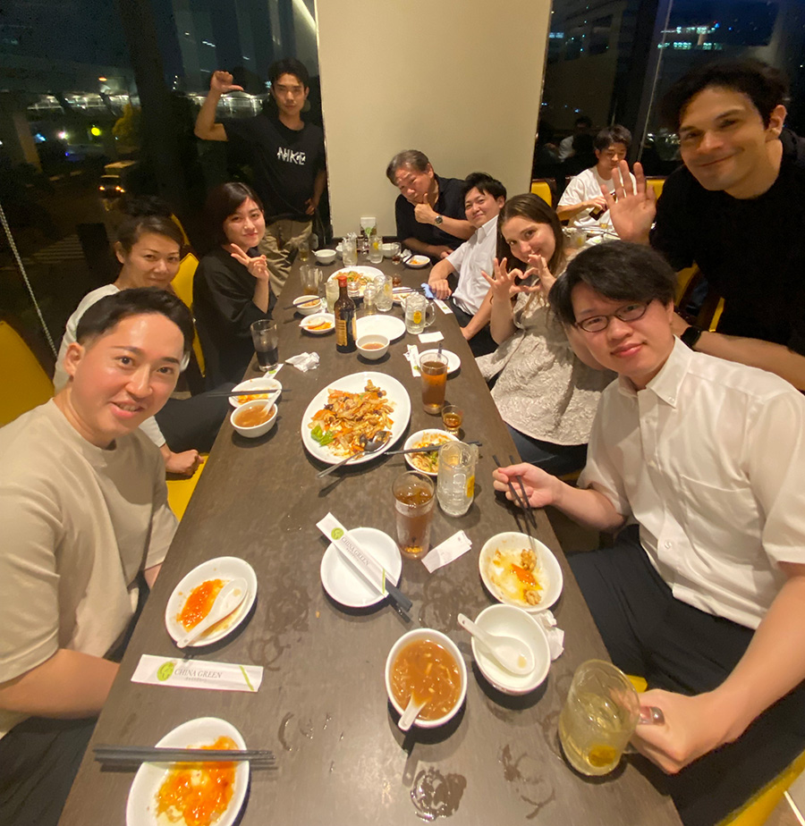 開催までの準備は、幹事の蒼矢プランナーをはじめとする社員のサポートを得て進められ、当日は35名の社員が参加し、蒼矢プランナーと同期の近藤プランナーが一緒に乾杯の音頭を取りスタート。美味しい料理を囲みながら、部署や役職を超えた会話を楽しみ、約1時間経過したところで席替えを行い、参加者がより多くの社員と話せるよう工夫しました。