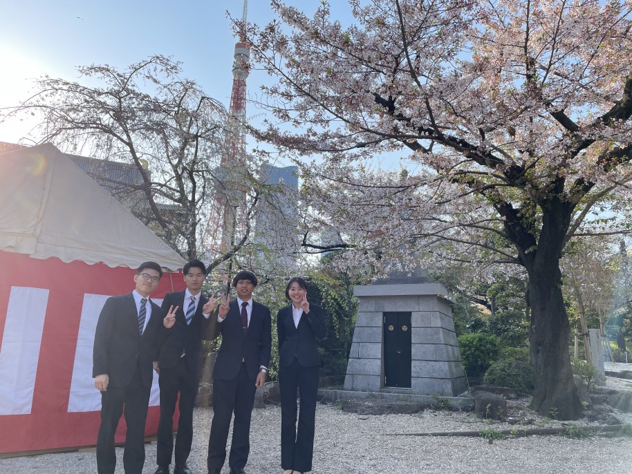今年は全員が関東エリアに在住していますが、初めて訪れる場所も多かったようで「私もゲストに様々なことを紹介できるように勉強を頑張りたいと思いました。」と話す新入社員。そして満開の桜の木の下で全員で記念撮影。