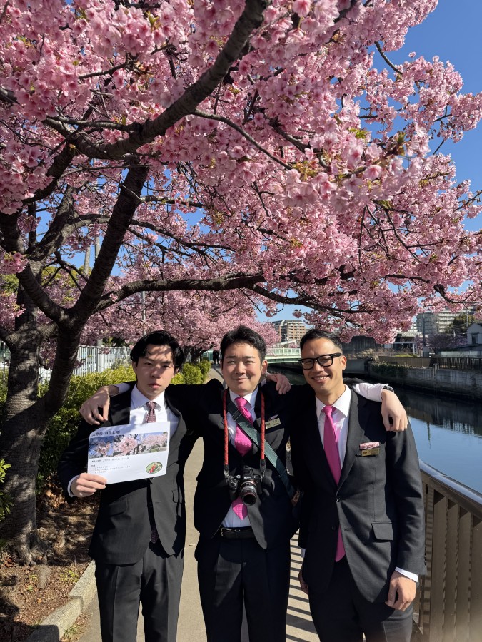 春の訪れを告げる桜の季節が近づいてまいりました。日本気象協会によると、2025年の東京の桜は3月22日に開花し、28日に満開を迎える見込みです。当社では、桜を楽しみに日本を訪れる海外からのゲストに、最高の桜体験を提供するため、1年生プランナーを中心に、3月6日、10日、12日の3回にわたり、桜研修を実施いたしました。
