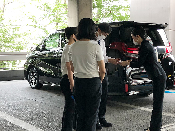 最終日には、車を使ってお客様に乗車していただくという設定の元、実際のプランナーの日常の所作などについても学びました。