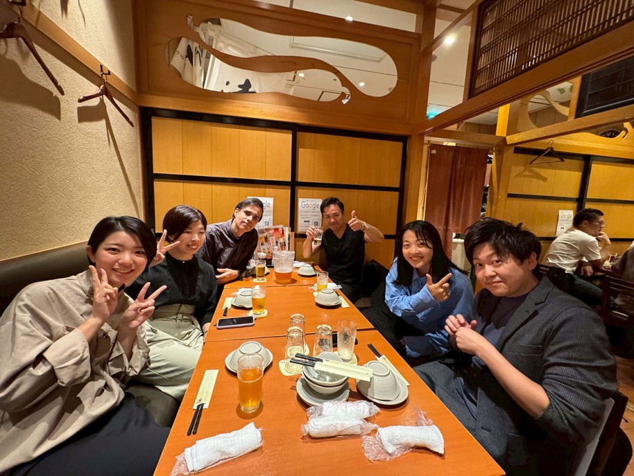 事業計画会の後は、場所を「くいもの屋わん 豊洲IHIビル」に移動し、真面目な発表会とは対照的に、決起会では部門の垣根を越え、社員同士が和やかに、楽しく歓談する時間となり、社員間の親睦と一体感を深める場となりました。