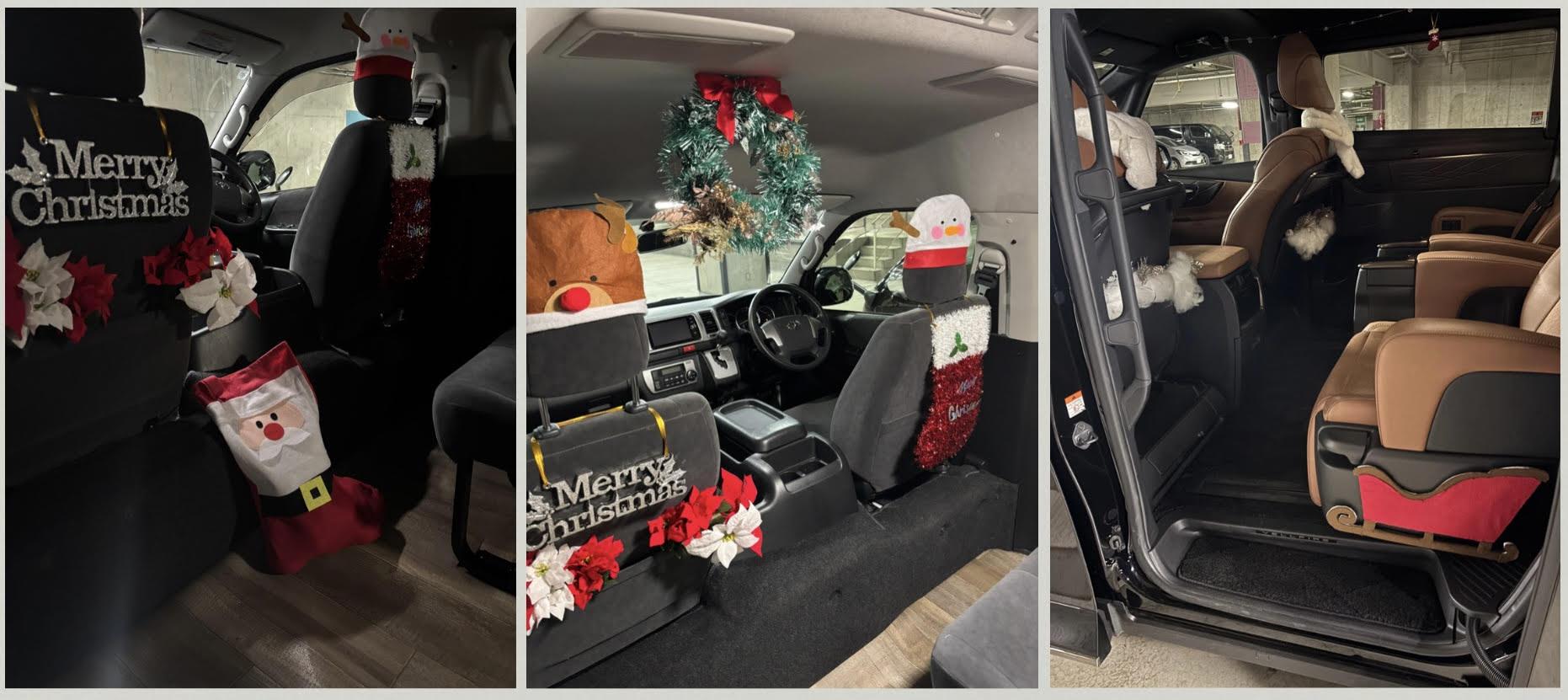 移動中の車内やキラキラと輝く街中で、ぜひサンタとの記念撮影もお楽しみください!皆さまへ最高の「笑顔」と「思い出」づくりのお手伝いをさせていただきます。