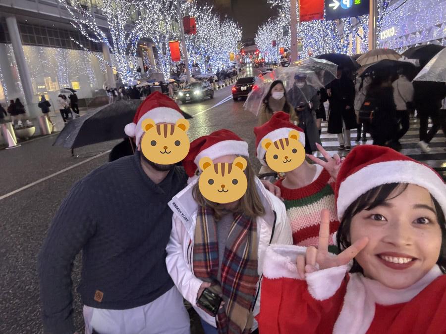 ゲストの皆様にサンタ帽をかぶっていただき、イルミネーションを背景に沢山の写真撮影ができて良かったです。世界30カ国を旅されてきたゲストとの会話を通じて、改めてガイドとしてお伝えできる情報の奥深さや、英語でのコミュニケーション力の必要性を再確認しました。今後はさらにガイドのスキルの幅を広げると共に、英語でのアウトプットを磨いていきたいと強く感じました。