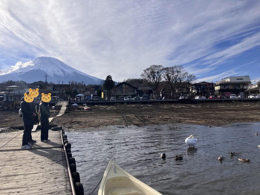 続いて、標高2,305mの富士山五合目へ。 そこは強く冷たい風が吹き抜けていましたが、間近に迫る富士山をバックに写真撮影。その後、河口湖でのランチを経て山中湖へと向かいました。