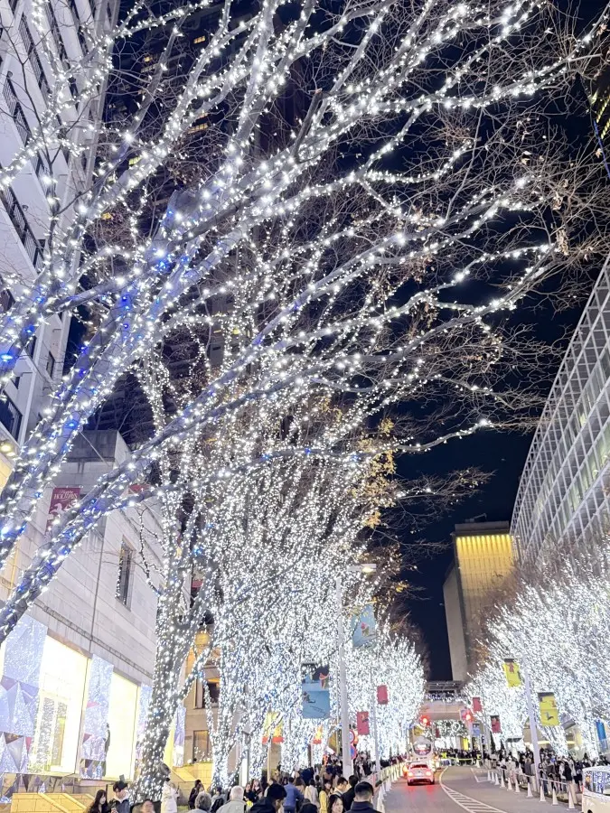六本木のけやき坂、そして丸の内。都会的なイルミネーションの輝きの中を、お二人はゆっくりと散策されました。
