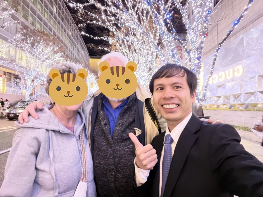 「築地に行きたい」とのご希望がありましたが、あいにく到着はお昼過ぎ。残念がるお二人に「今の時期だからこそ楽しめる場所に、ご案内します」とお伝えし、イルミネーションツアーへ出発しました。