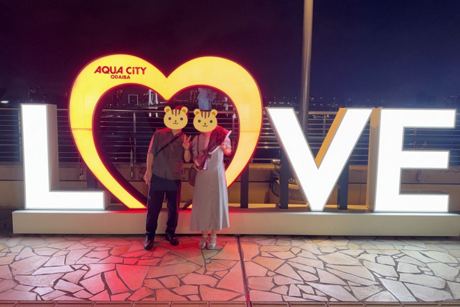 まずは、スカイツリーを望む十間橋へ。少し緊張されていたお二人でしたが、徐々に表情は和らぎ、笑顔が増えていき、最高の瞬間を収めることができました。そして車内に用意していたプレゼントをお渡しすると、「ありがとうございます!」と嬉しいお言葉をいただきました。